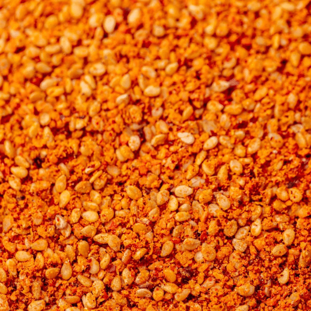 Nous avons choisi le Gomasio au piment d’Espelette de Nomie pour sa saveur unique et son croquant délicieux. Ce condiment combine les graines de sésame grillées avec la chaleur subtile du piment d’Espelette, ajoutant ainsi une touche de piquant et de profondeur à notre salade rafraîchissante et généreuse.